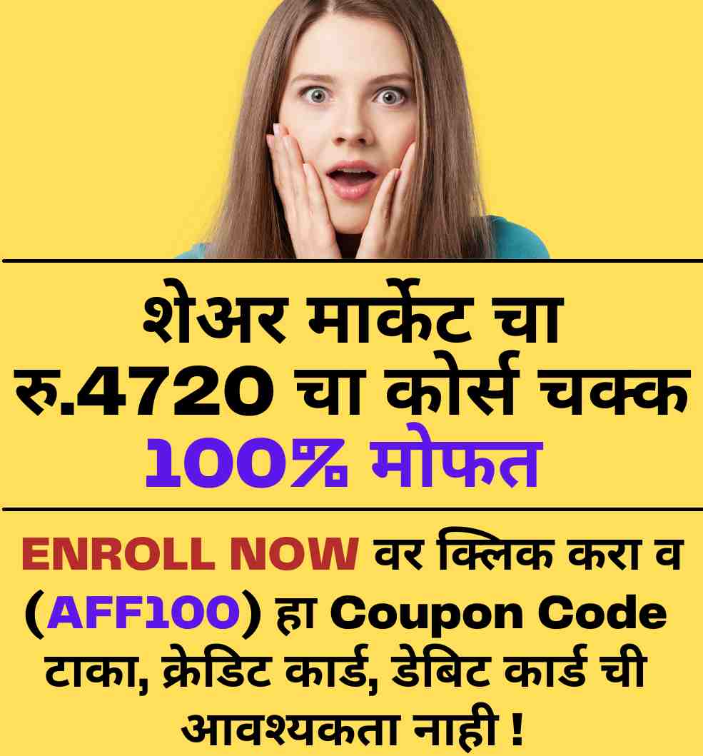 खास तुमच्या करिता दोन शेअर मार्केट चे व्हीडीओ कोर्स एक १००% FREE, आजच जॉइन करा, लवकरच रु.४७२० चा कोर्स मोफत उपलब्ध करून देणार आहोत.